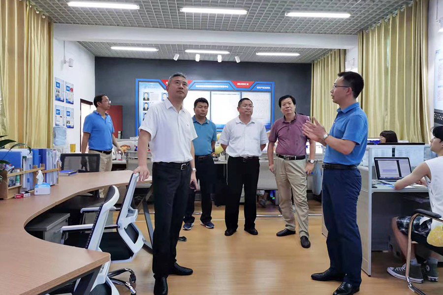 省科学技术协会党组成员、副主席余军(左二)参观物联网技术研发团队成果展厅