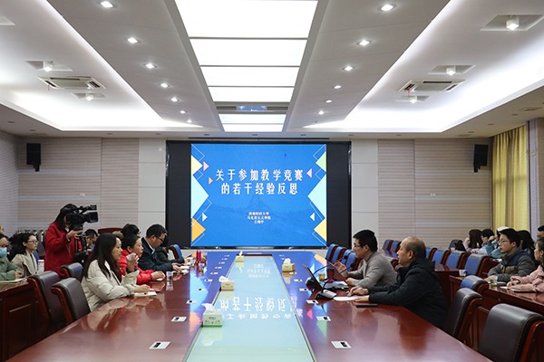 王翔宇从标准国赛竞赛规则、提升竞赛水平的可用资源、标准国赛未来发展的可能动向等方面向与会教师介绍了教学竞赛的新形势,并着重从“量的积累,以课养备”“问题导向,重点突出”“升华思想,夯实思政”“学科交叉,延展学理”“生活指引,突出应用”“兼顾学理,设计规范”“调理身心,自然应对”七个方面分享了自己参加教学竞赛的经验。
