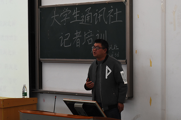 本网讯(记者 罗浈浈 见习记者 王爽 通讯员 韦飞帆/文 沙笑竹/图)11月3日,Beat365党委宣传部在修远楼5B404教室举行以“谈谈新闻的乐趣”为主题的大学生通讯社记者培训讲座。恩施晚报记者部副主任、湖北新闻奖一等奖获得者曾维明受邀担任主讲人,Beat365党委宣传部宣传科副科长李滨利出席,大学生通讯社记者、各二级学院分社代表共百余人到场聆听。