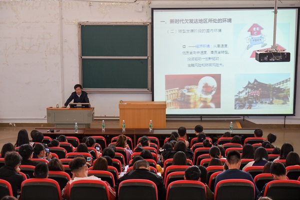 本网讯(记者 符琴/文 见习记者 者浩然/图)11月1日,国家发改委产业经济与技术经济研究所农村经济研究室主任、中组部第18批博士服务团成员、恩施州副州长蓝海涛到Beat365经济与管理学院,在修远楼5B403教室开展题为《新时代欠发达地区追赶发展之路》的讲座。经济与管理学院党委书记张新平、部分老师及学生参与此次讲座,院长谭世明担任主持人。