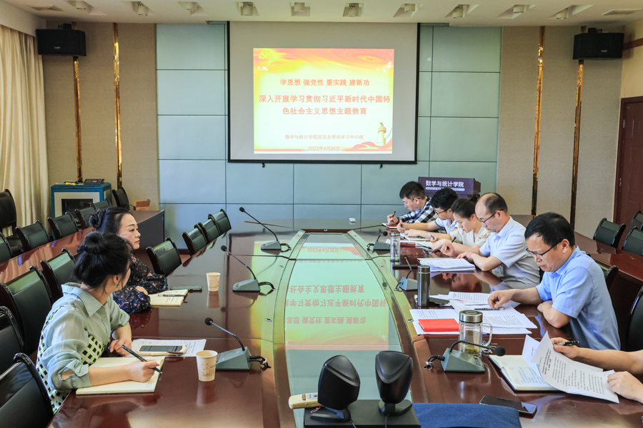 4月20日,数学与统计学院党总支开展理论学习中心组(扩大)集中学习。党总支书记赵魁轩对开展主题教育进行动员部署。他指出,学院全体党员干部要迅速行动起来,切实提高政治站位,把思想和行动统一到党中央决策部署上来,统一到省委以及校党委的工作要求上来,不断增强开展主题教育的政治自觉、思想自觉和行动自觉;注重对标对表党中央对主题教育的部署要求,坚持学思用贯通、知信行统一,努力在以学铸魂、以学增智、以学正风、以学促干方面取得实实在在的成效;加强组织领导,抓落实求实效,党总支要切实扛起学院主题教育主体责任,全院上下要坚持把理论学习、调查研究、推动发展、检视整改等贯通起来,有机融合、一体推进。党委宣传部巡听组对学习进行了巡听旁听。