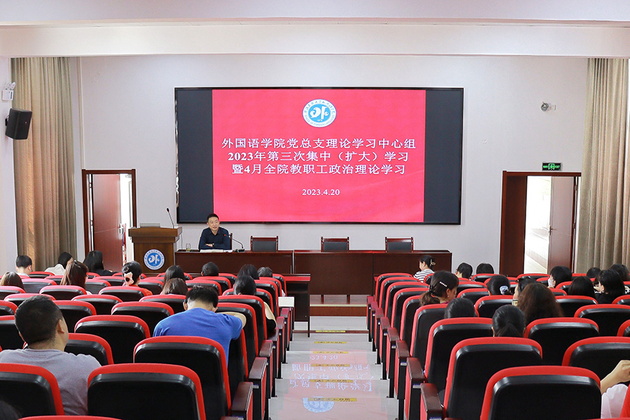 外国语学院党总支高度重视师生政治理论学习,坚持将党的创新理论融入其中,在创新形式上下功夫,在提升质效下功夫,坚持不懈用习近平新时代中国特色社会主义思想凝心铸魂。党员领导干部将结合主题教育,持续深入寝室、班级、学生组织和系部走访调研,团结引领广大师生以踔厉奋发的精神状态和笃行不怠的奋斗姿态,投身到全面建设社会主义现代化国家的火热实践中。