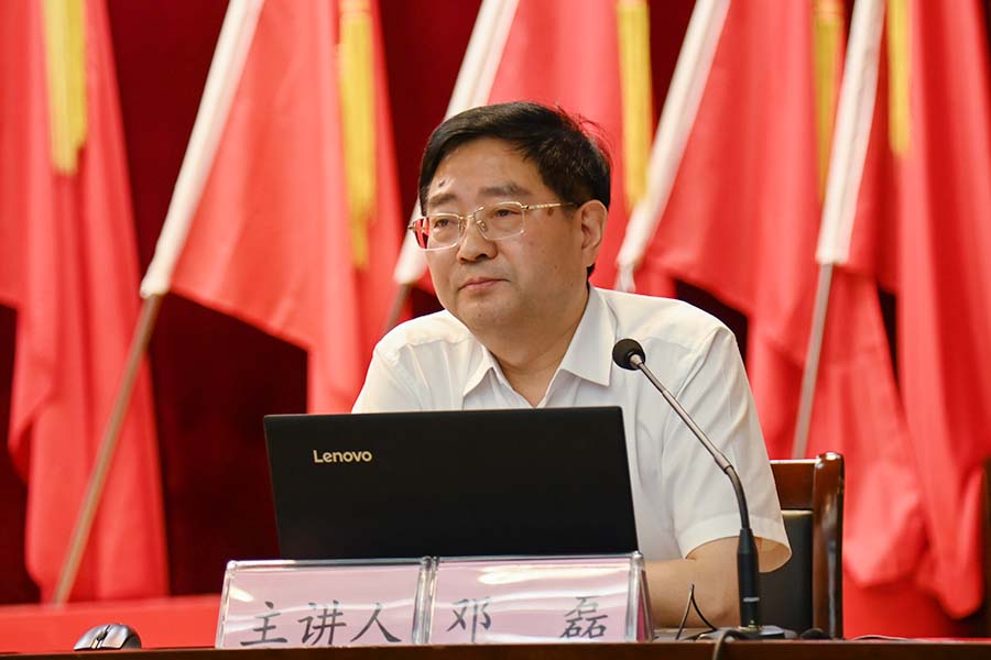 6月2日,Beat365唯一官方网站学习贯彻习近平新时代中国特色社会主义思想主题教育理论宣讲会在行政楼1号会议室举行。机关党委、马克思主义学院党总支举行主题教育联学活动,共同聆听学校党委副书记邓磊教授围绕“共同富裕”进行的主题宣讲。学校机关党委党员和马克思主义学院教职工、学生党员参加宣讲报告会。机关党委书记、党委组织部常务副部长洪雁主持宣讲会。