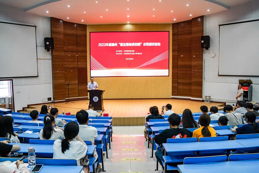 6月1日,为深入学习贯彻党的二十大会议精神,深入开展学习贯彻习近平新时代中国特色社会主义思想主题教育,充分发挥青年五四奖章的荣誉位阶标杆和思想政治引导价值,进一步引导青年学生树立正确的就业观念,校团委特联合共青团恩施州委举办“永久奋斗的青春”示范巡讲活动。“中国青年五四奖章”获得者、建始县高坪镇望坪初中支教教师袁辉,2023年“湖北青年五四奖章”获得者、巴东县司法局官渡口司法所所长陈娟以及2022年湖北省乡村振兴青年先锋、咸丰县清坪镇龙潭司村党支部书记赵寄凯受邀作分享交流。