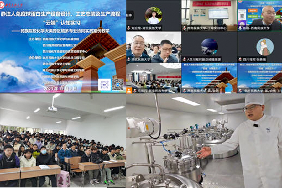同时,该专业还积极组织师生参与到同专业同行主流教育教学交流中。2023年12月2日上午,学院全体工程专业学生在学院通过腾讯会议,参与了由西南民族大学主办的跨区域民族地区院校化学大类多专业协同实践教学,本次教学活动内容涵盖专业设备工艺设计、容器设计、三维管道设计、设备生产车间设计及加工制造等,该专业全体师生在“云端”参观了山东泰安及广东深圳项目的现场生产流程。此类交流活动吸引同学们聚焦专业知识和实操过程,达到了理论指导实践、实践反哺理论的教学目标,让该专业全体学生获得了直观且真实的认知实习感受。
