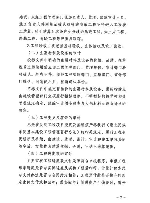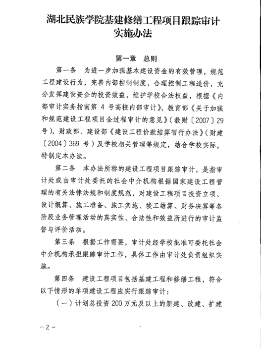 《湖北民族学院基建修缮工程项目审计实施办法》