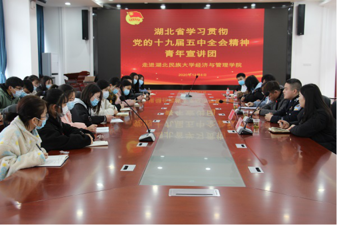 本网讯(记者 郭燃 陈晓倩/文 苏畅/图)2020年12月8日,湖北省学习贯彻党的十九届五中全会精神宣讲会在行政楼1号会议室顺利开展。青年宣讲团成员华中农业大学植物科学技术学院副院长、教授郭亮,中建三局工程总承包公司基础设施分公司技术部经理向文秘,湖北省武汉市公安局江汉区分局警务指挥处民警涂可蔼应邀出席并担任此次宣讲会主讲人。