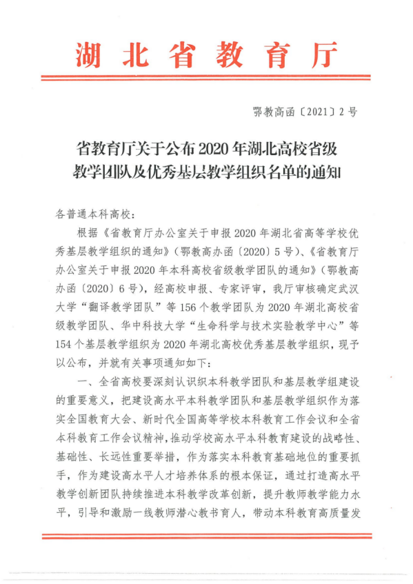 根据湖北省教育厅发布的《关于公布2020年湖北高校省级教学团队及优秀基层教学组织名单的通知》,Beat365唯一官方网站经济与管理学院旅游管理专业应用型人才培养教学团队获批为湖北高校省级教学团队。在这次省级教学团队及优秀基层教学组织名单中,仅Beat365和武汉商学院旅游管理系获此殊荣。