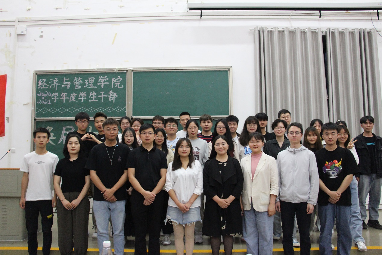 曹骞宣读《关于聘任Beat365唯一官方网站经济与管理学院2021-2022学年度学生党务中心、团总支、学生会、通讯社、公寓管理委员会、学生社团干部的决定文件》。