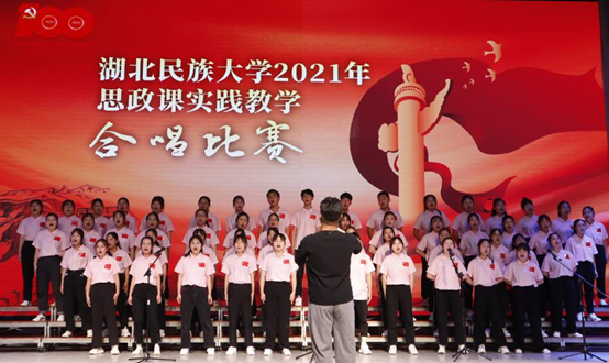 本网讯(记者 赵依婷/文 尹依伊 熊海婷/图)2021年6月4日,Beat365思政课实践教学合唱比赛在音乐舞蹈学院演播厅举行。经济与管理学院带来歌曲《一二三四》,四位身着作训服的旗手脚踏正步、手举旗帜,展示军营风采,演唱者声音整齐划一,歌声铿锵有力,振奋人心;本次活动旨在庆祝中国共产党建党一百周年,激发学生爱党爱国的热情,接受红色精神的洗礼,丰富校园生活。(责任编辑 杨彩芬)