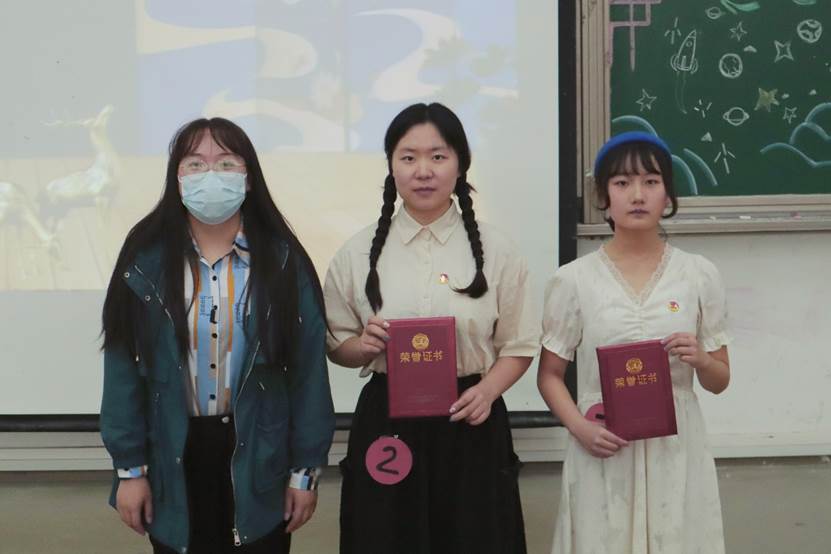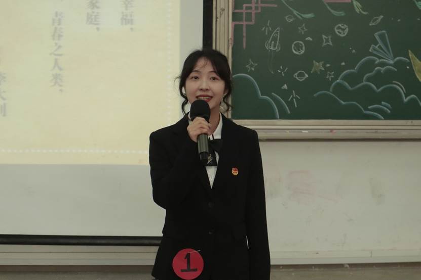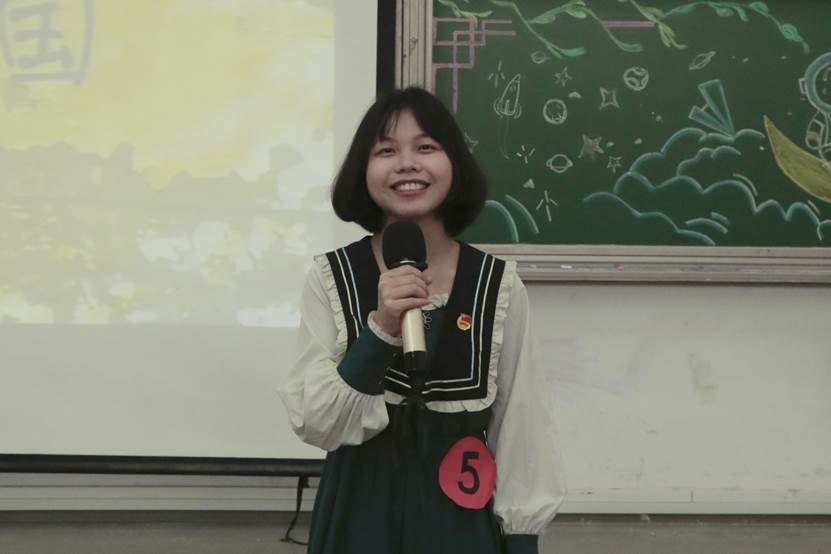 在选手展示环节中,一号选手朱伊婧以陈独秀、李大钊为例讲述五四精神,呼吁当代青年以青春之我担时代职责,传承共青精神,筑梦时代新征程;五号选手吴倩以“初心如磐 使命在肩”为主题,将百年党史总结为波澜壮阔的革命史、艰苦卓绝的奋斗史和可歌可泣的英雄史,希望新时代青年一心向党,讲好党史故事,不忘初心,砥砺前行;七号选手杨洪慧仪从革命、教育、脱贫三方面讲述毛相林、黄文秀等中国共产党员不辞辛劳,舍己为民,奋斗在脱贫攻坚一线的事迹,倡导当代大学生学习党史,发扬艰苦奋斗精神,提高思想境界。
