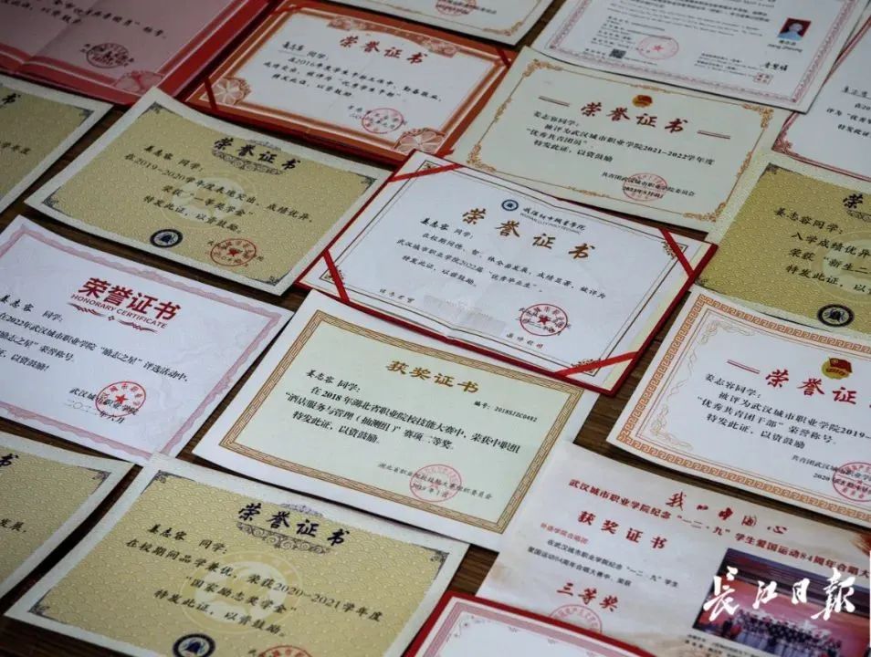 奖状和荣誉证书能摆满一张床