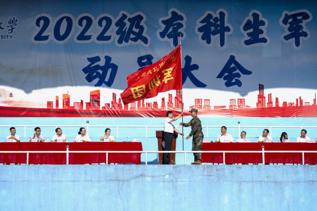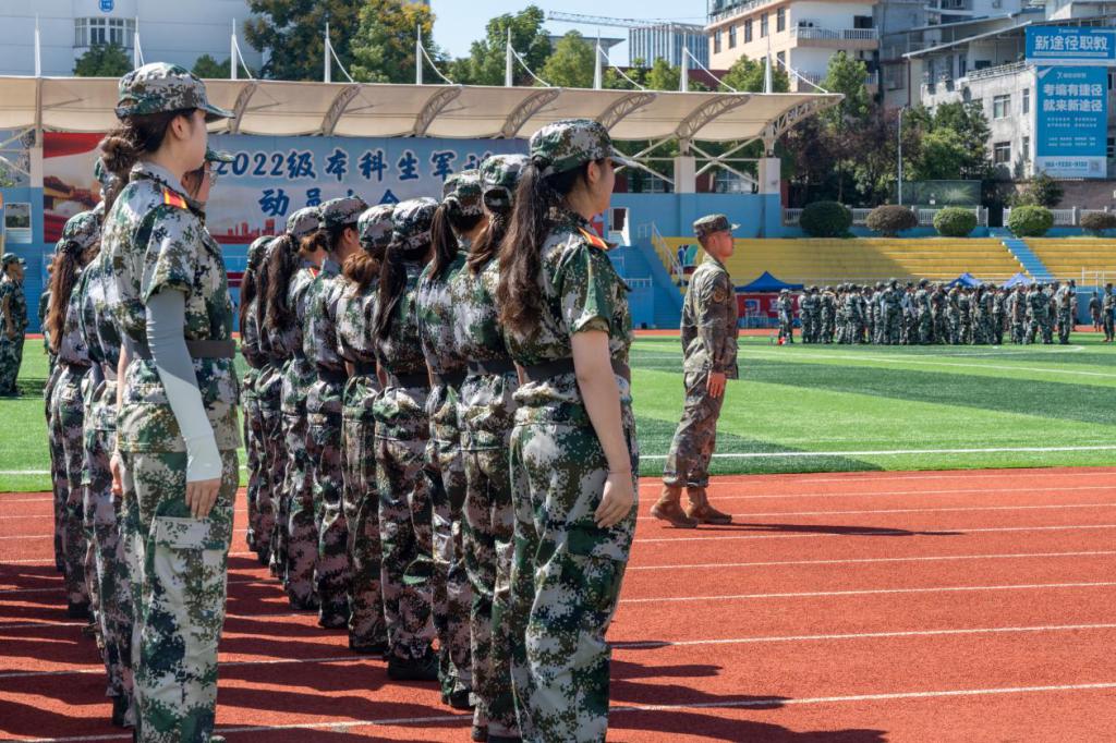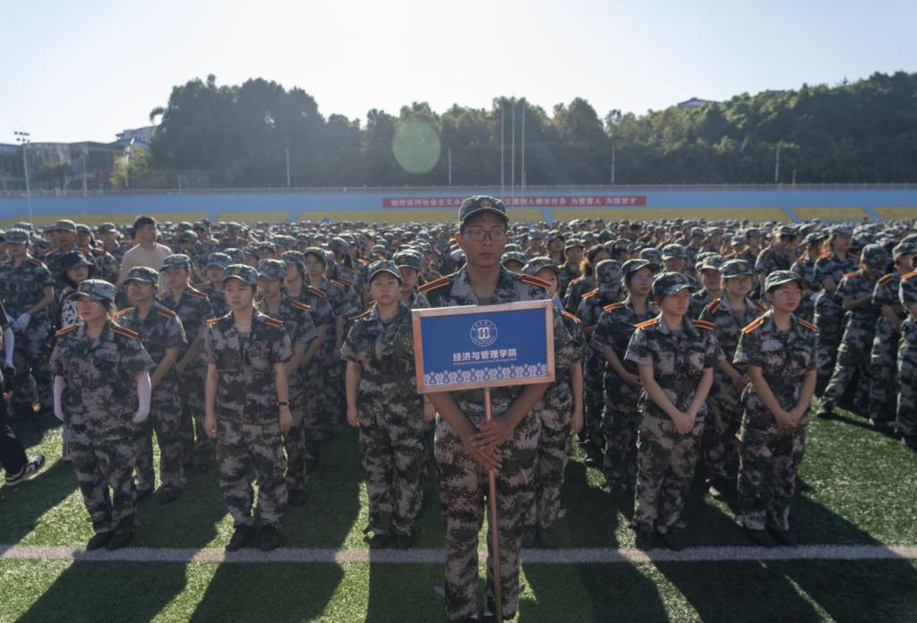 本网讯(记者 叶然/图)2023年9月4日,2022级本科生军训动员大会在五环体育场举行。动员大会结束后,经济与管理学院全体22级本科生在五环体育场进行军训。学生挥手干净利索,落脚铿锵有力,在绿茵场上挥洒汗水、磨练意志。(责仁编辑 孙欣雨 审核 曹骞)
