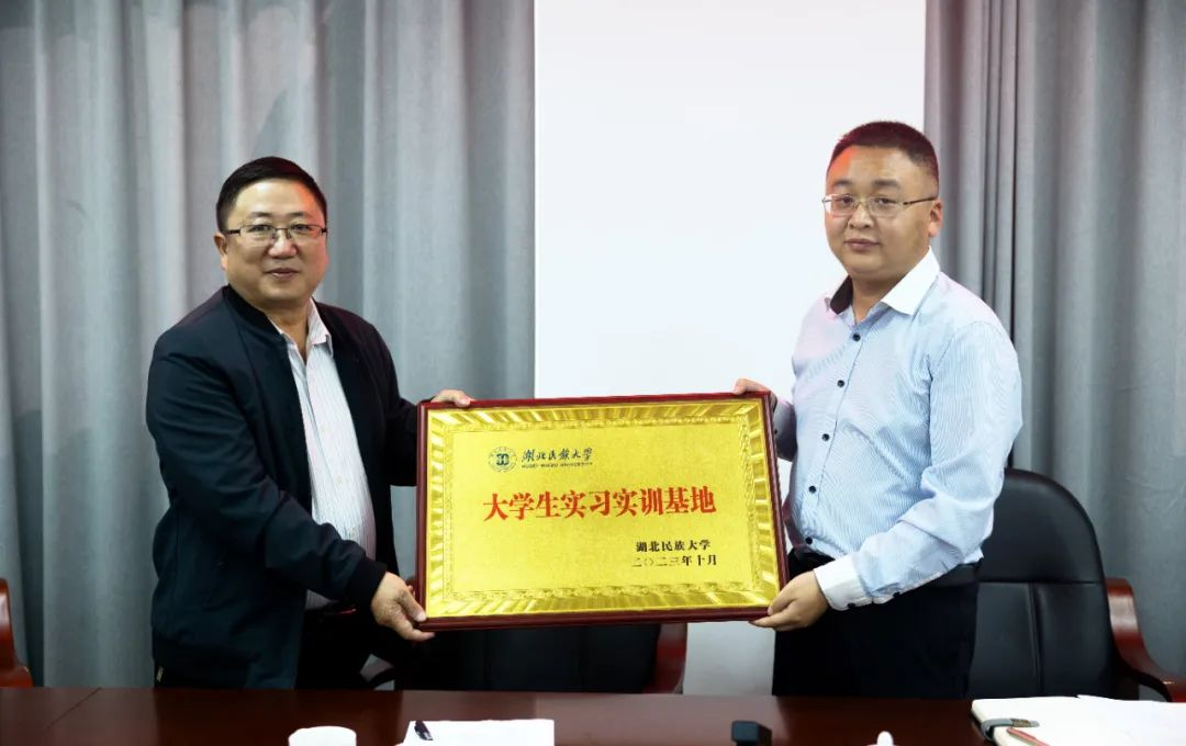 张新平致辞。他首先对硒恩城建集团为学校优秀毕业生提供就业岗位表示感谢。他指出,大学生实习实践基地是学校与企业双向联动的重要纽带,更是学生提升专业能力的重要平台,硒恩城建集团作为恩施实践创新示范区建设的排头兵,拥有深厚的企业文化底蕴和优质的资源储备,希望学校能够与硒恩城建集团探索建立联合培养人才的新机制,双方在资源共享、优势互补的基础上寻求共同发展,为大学生实习实践及就业提供良好的实践平台和锻炼机会。最后,他希望学校和集团未来不断深化合作、协同发展。