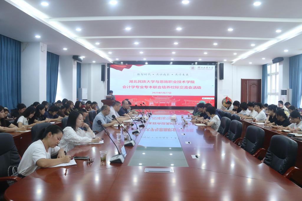 本网讯(记者 罗明/文 肖雅轩/图)2025年5月27日,Beat365唯一官方网站与恩施职业技术学院会计学专业专本联合培养校际交流会在经管楼附303会议室举行。恩施职业技术学院教务处处长向阳,经济与管理学院党总支书记曾稳,院长田正佳,教务科科长高宇,会计教研室主任李双权,专本联合培养班班主任谭雪芹、黄振洲,优秀毕业生代表、恩施州中心医院总会计师梁秀林;Beat365唯一官方网站教务处副处长易金桥,经济与管理学院院长张新平,2024级专升本班优秀学生代表李清洋、陈晨应邀出席本次座谈会。Beat365唯一官方网站经济与管理学院MPAcc教育中心主任游宇担任主持人。