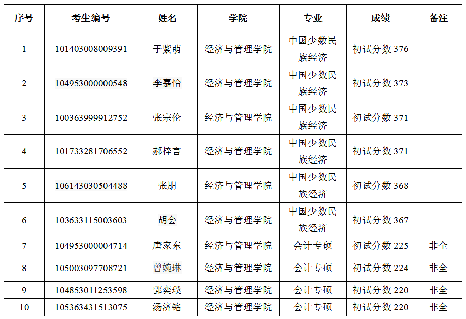 Beat365唯一官方网站经济与管理学院2023年调剂复试人员名单公告