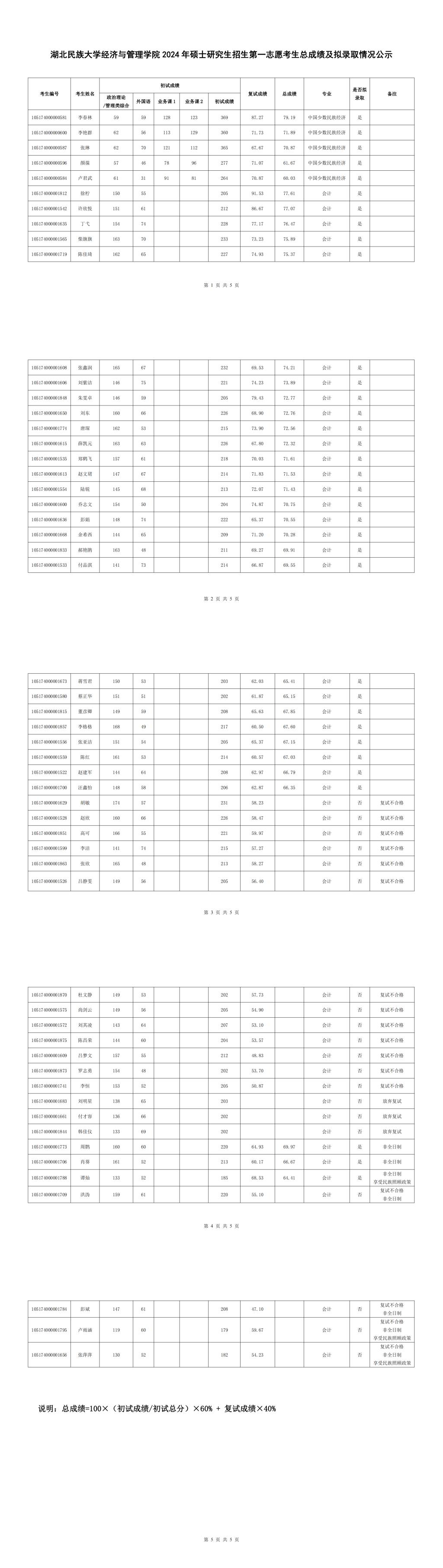 Beat365唯一官方网站经济与管理学院2024年硕士研究生招生第一志愿考生总成绩及拟录取情况公示