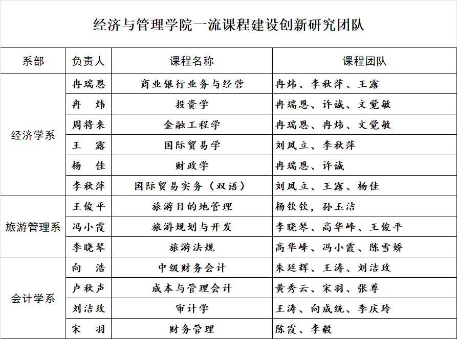 经济与管理学院一流课程建设创新研究团队名单