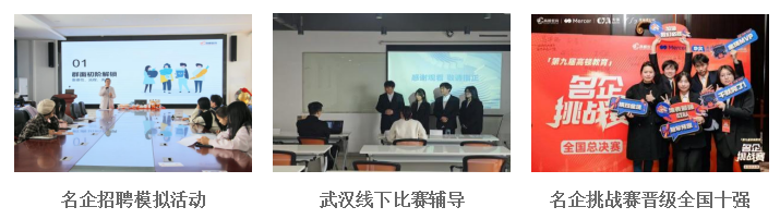 定期邀请名企高管、HR、优秀毕业生等开展行业洞见、职业分享等系列讲座,提供系统性的就业力课程,组织名企参访与雇主交流、名企实践训练营、海外研学与实训等国际教育实践活动,开阔学生国际视野,助力学生全面发展。