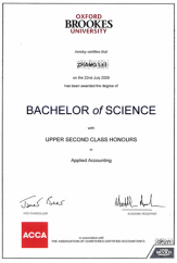(三)牛津布鲁克斯大学应用会计理学(荣誉)学士学位以及伦敦大学专业会计硕士学位(符合申请条件)。