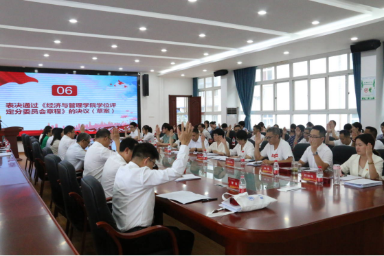 下午,在第二次全体会议中,全体教职工表决通过了2021版人才培养方案、《表决办法(草案)》、《经济与管理学院工作报告(草案)》、《经济与管理学院议事规则(草案)》等10项方案。并通过选举,推选张新平等15位同志为经济与管理学院院务委员会成员,推选王涛等5位同志为经济与管理学院学术分委会成员。
