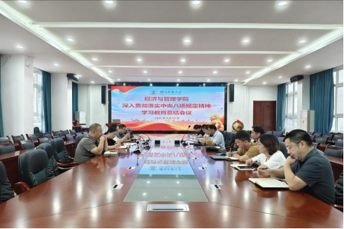 本网讯(记者 吴德一 苏燕康/文 王朝军/图)2025年9月15日上午,经济与管理学院在附303会议室组织召开深入贯彻中央八项规定精神学习教育总结会议。学院党委成员及领导班子、各党支部书记和科室负责人参加了此次会议。会议由党委书记陈霞主持。