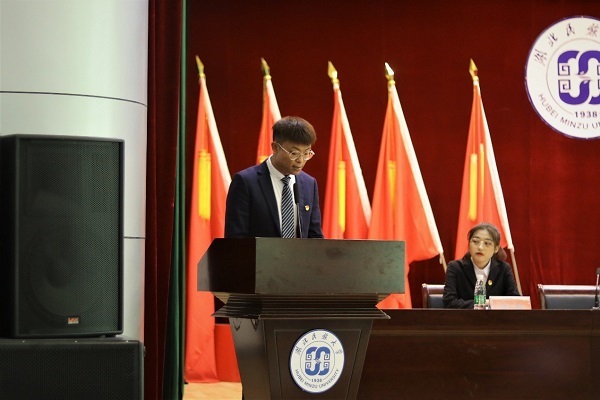 我院学生会主席向浩作以《青春心向党 奋发新征程——带领全院青年学生用奋斗谱写青春华章》为主题的工作报告,学生会副主席阿力米拉·托合提宣读《经济与管理学院学风建设管理制度》文件。