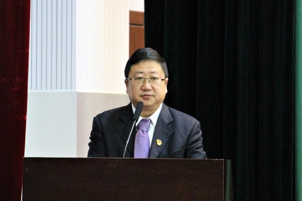朱廷辉讲话。他指出,学生会组织应发挥群团作用,持续推进改革创新,以解决青年学生突出问题、强化宗旨意向为导向,接受广大学生的监督与评议,克服功利化、官僚化问题。最后,他建议,学生会应动员广大学生到基层群众中建功立业,参加三下乡、返家乡等社会实践活动,深入基层开展实地调研农业培训、医疗服务、政策宣讲等实践项目。