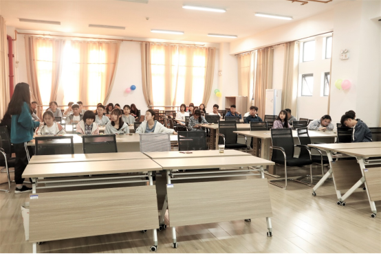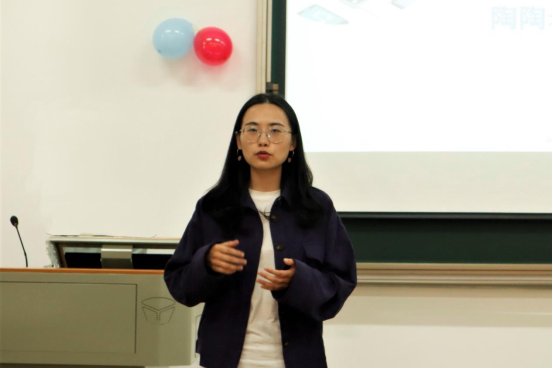 陶陶致辞。她从学生训练状态、协会内部成员构成、大赛成绩等方面分析选手参赛优势。她希望作为ERP协会内部中坚力量的社团成员积极参加比赛、提高实践能力、体验企业经营管理过程,成为综合型管理人才。