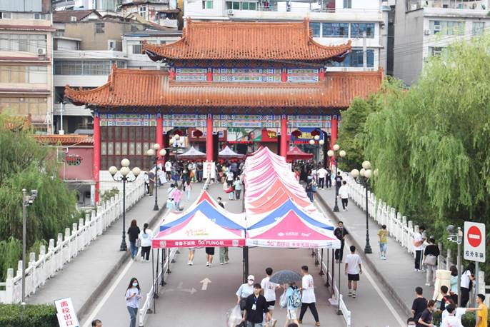 学校正大门迎新现场 李兰/摄