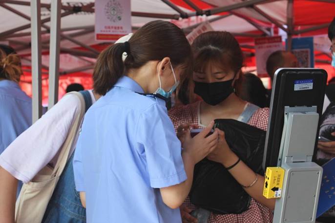 工作人员查看新生健康码 李兰/摄