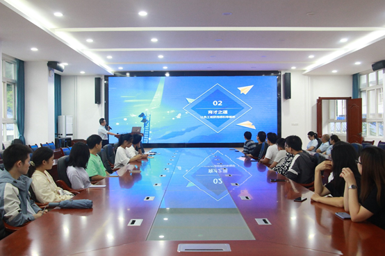杜寰雨从公司概况、育才之道、纳贤之心三个方面展开宣讲。在公司概况方面,他首先介绍银行架构,并表示,建设银行业务覆盖基金、信托、保险等多个领域,牌照种类领先银行同业。他提到,建设银行的愿景是打造最具价值创造力的国际一流银行,企业核心价值观是诚实、公正、稳健、创造。随后,杜寰雨以视频的方式介绍公司的育才之道,他表示公司注重人才发展,关心员工的获得感和幸福感。在纳贤之心方面,杜寰雨指出,本次招聘会主要在管理培训生、科技类专项人才、综合营销、柜面服务四个方面招聘人才。