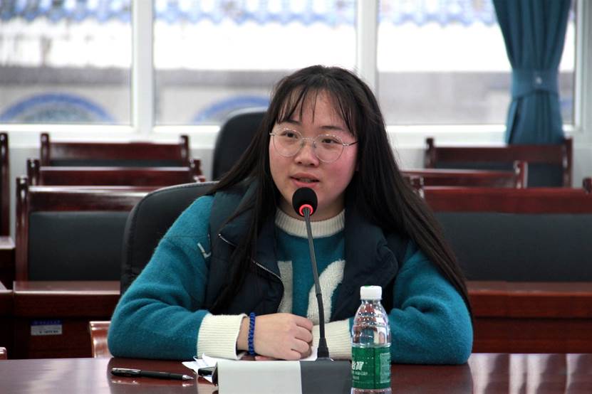 张芫发言。她指出学生在日常学习中应端正学习态度、加强政治理论学习、提高思想觉悟并加强自身修养。田甜讲话。她表明新疆籍学生是学校不可分割的一部分,是促进民族团结的重要力量,并希望学生加强与老师的交流与沟通,积极参与校园活动,丰富校园生活,践行民族共同体理念。努尔比亚讲话。她建议学生制定清晰的目标,对未来进行合理规划,以认真踏实的态度对待学习,增强自身责任感与使命感,为学校以及家乡的发展贡献力量。
