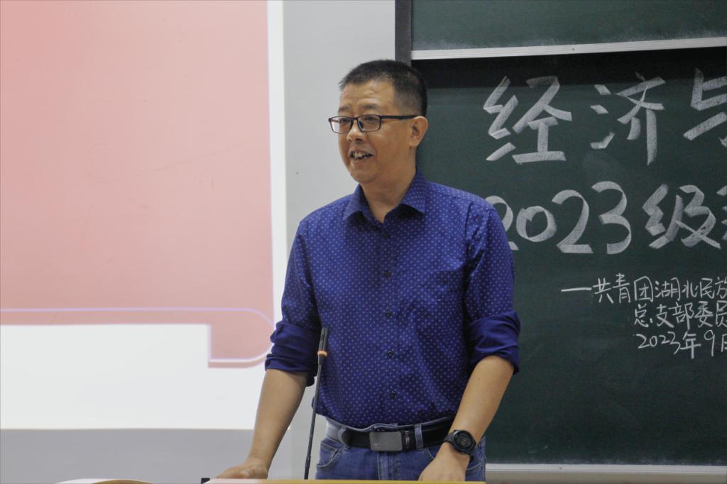 本网讯(记者 李茁 张涛/文 张玉婷 胡楚/图)2023年9月7日,经济与管理学院会计学系2023级新生见面会暨专业认知教育大会在德智楼9B401教室举行。经济与管理学院副院长朱廷辉以及会计学系教师出席了本次大会。会计学系副主任刘洁玫主持本次大会。