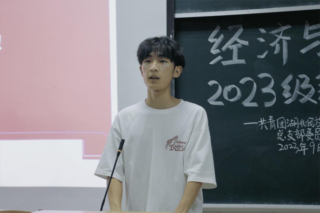 老生代表赵志强发言。他建议大一新生制定学习计划,合理分配自身时间,掌握正确的学习方法,提高自身综合素质。同时,他介绍参加实践活动的相关步骤和方法,表明新生应珍惜当下,积极参加创新创业比赛,向团组织、党组织靠拢,做新时代的有志青年。