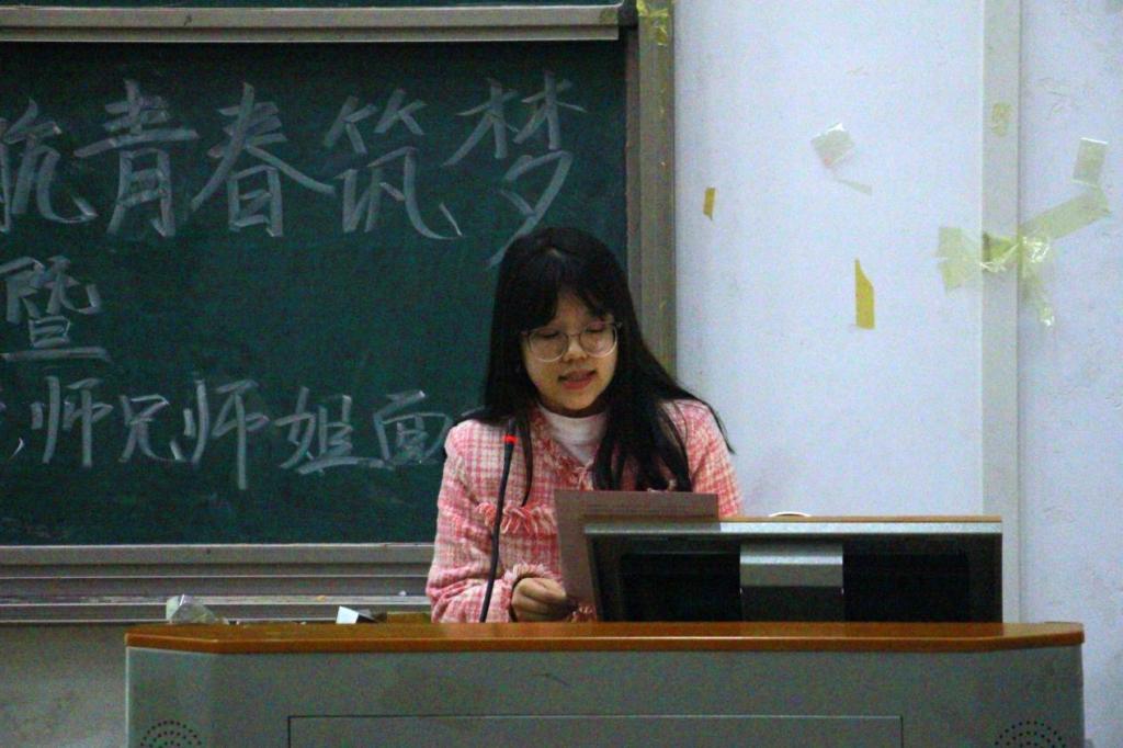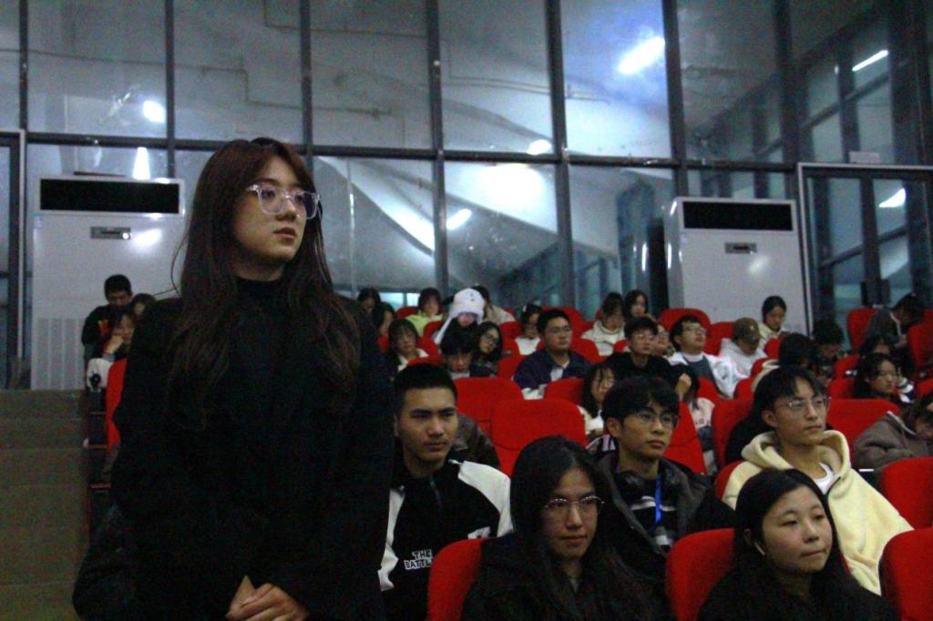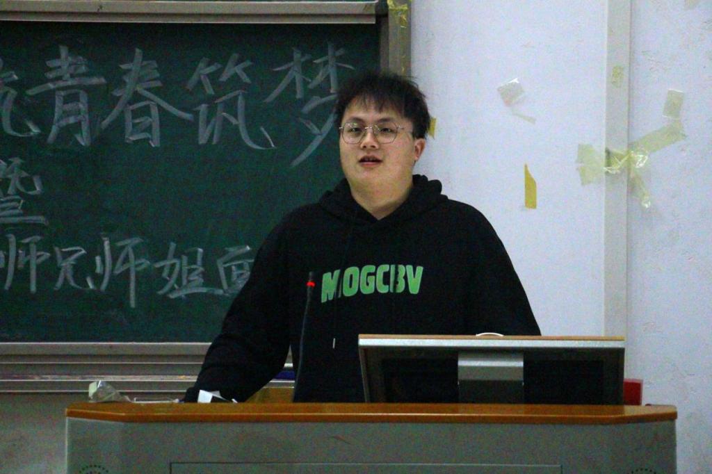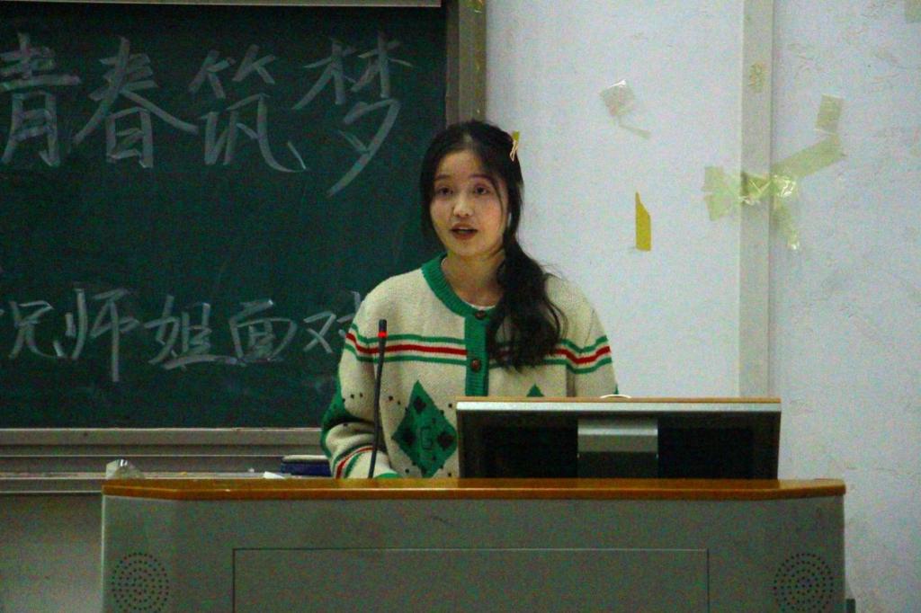 覃雨致开幕词。她以“躺平”和“内卷”两词引入话题,表示青春可以由短暂的躺平来缓解焦虑和压迫,也可以用片刻的内卷来争取梦想的实现,但不能在面对挫折时轻易放弃。她鼓励学生注重身心发展,在内卷和躺平之间找到合适的平衡点,养精蓄锐,努力实现自身目标。