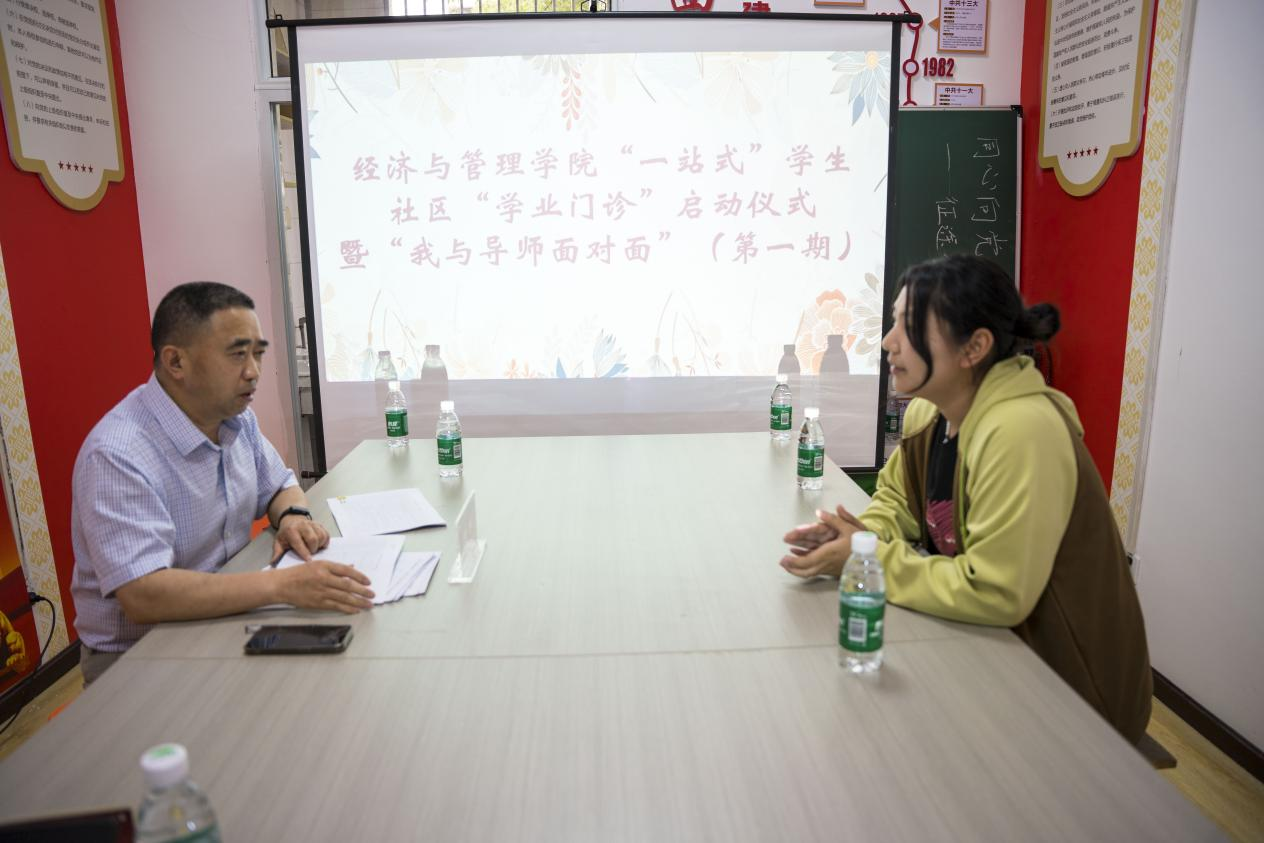 本网讯(记者 熊伊人 杨兆佳/文 叶然/图)2024年4月25日,经济与管理学院“一站式”学生社区“学业门诊”启动仪式暨“我与导师面对面 ”活动在春雨社区隆重举行。经济与管理学院党委书记陈霞、党委副书记张姣蓉、经济学系主任谭宇、学生科科长覃杰、学生科辅导员亚克甫受邀参加。14名学生参加本次“学业门诊”问诊活动。张姣蓉担任本次活动主持人。