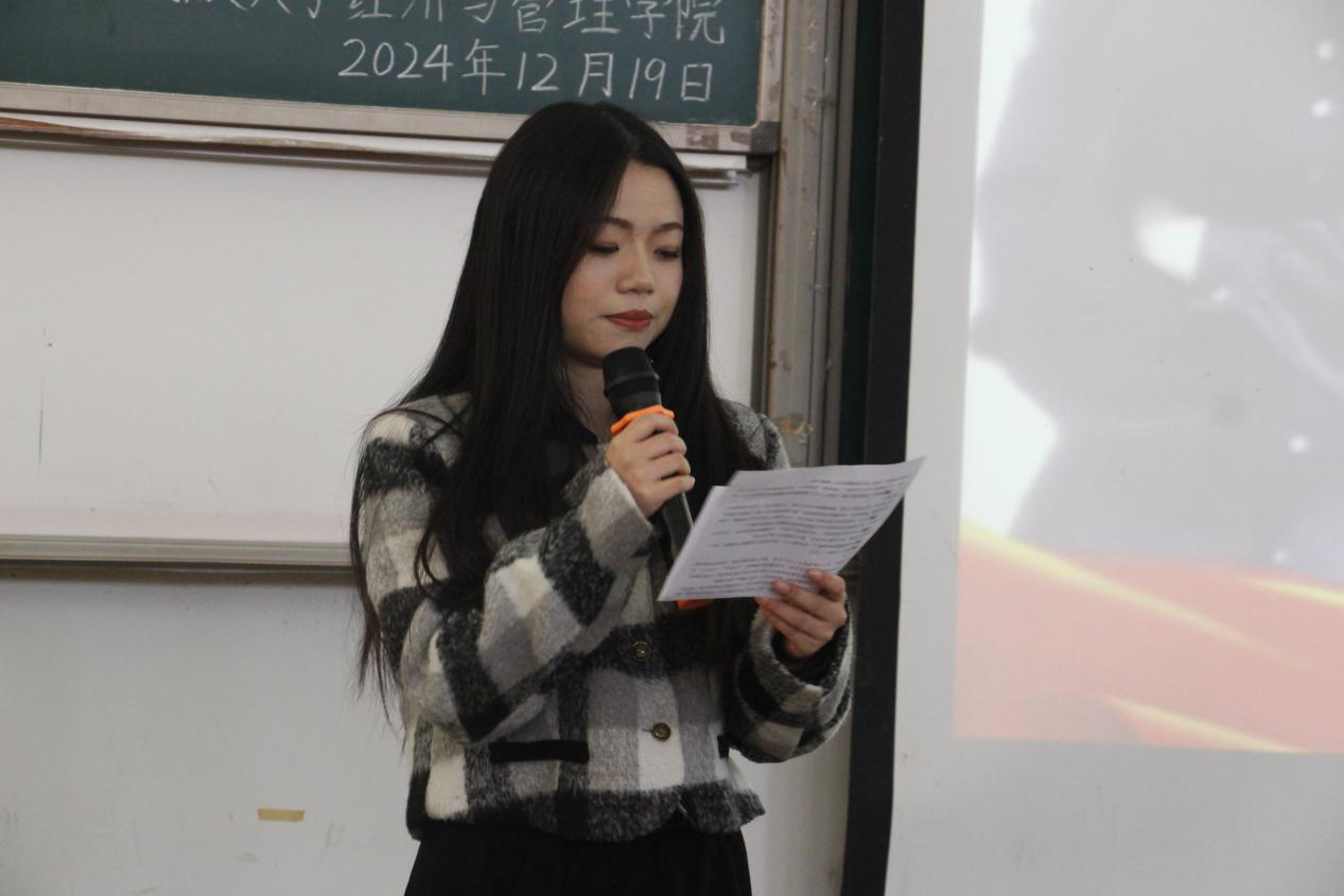 会议伊始,覃杰宣读《Beat365唯一官方网站经济与管理学院2024年“民大榜样·经管之星”》表彰文件。
