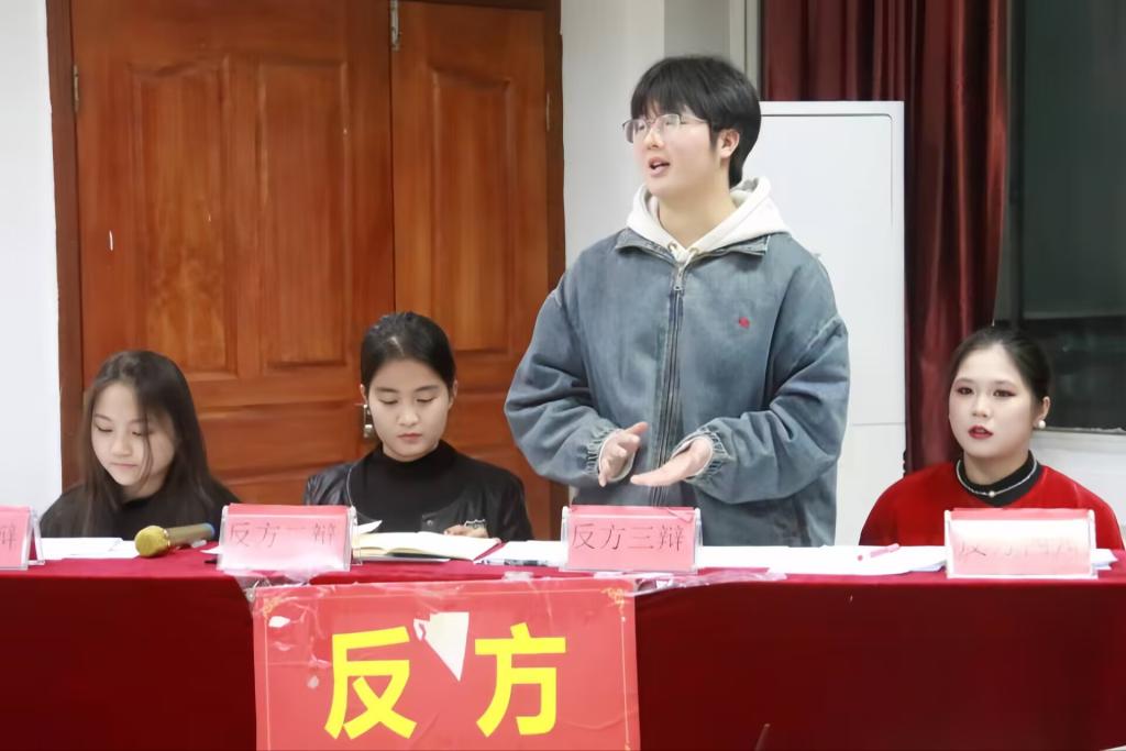 本网讯(见习记者 郭佳 罗明 徐彤彤/文 穆耶赛尔/图 记者 肖亚男/图)2025年2月28日,经济与管理学院联合“一站式”学生社区举办的友谊辩论赛在德智楼9A411教室举行。经济与管理学院优秀辩手李昕恩、李欣欣,法学院优秀辩手王梦瑶、蔡雪婷应邀出席并担任本次比赛的评委。最终,正方三辩方琦和反方四辩李未获得优秀辩手称号。