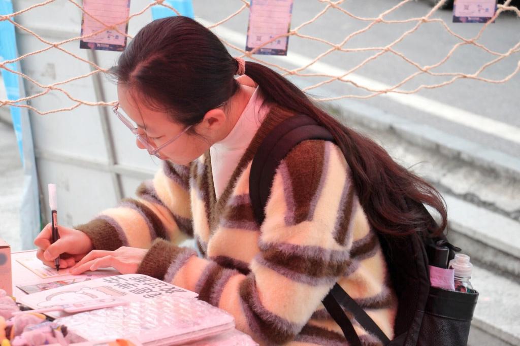 活动前期,心连心互助社采用线上线下联动宣传的形式,加深师生对本次公益活动意义的理解,呼吁更多师生加入“蓝信封”长期通讯计划。活动现场,学生积极参与模拟书信回复,在花色各异的明信片上写下真诚答复和衷心祝福。他们表示,信件中孩子们对未来生活的期待,激励着自身更加珍惜当下,用行动传递温暖力量。