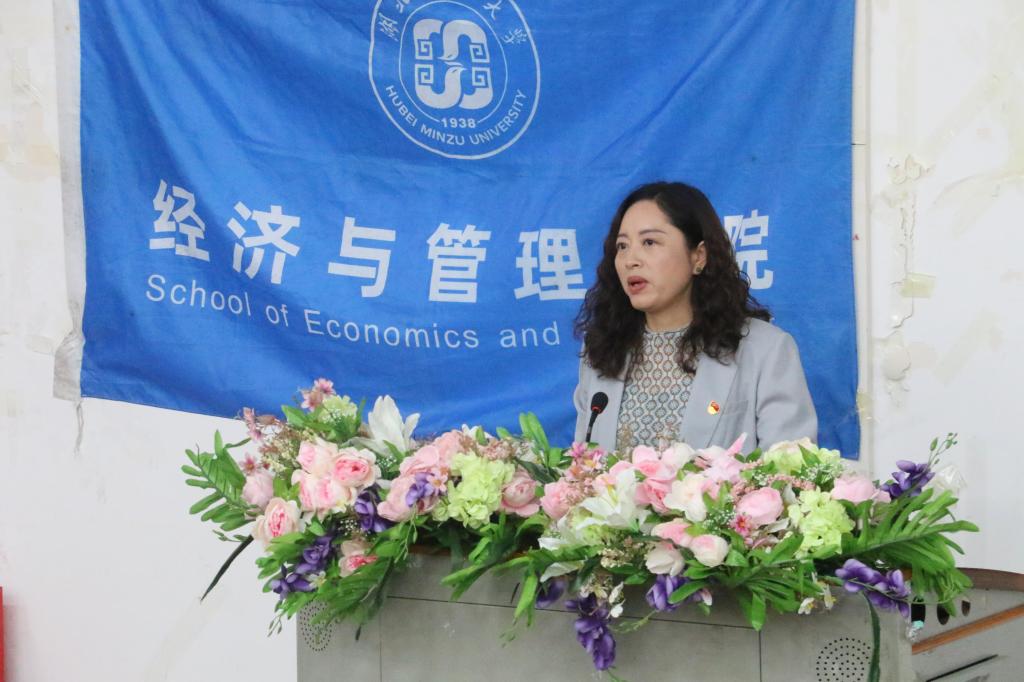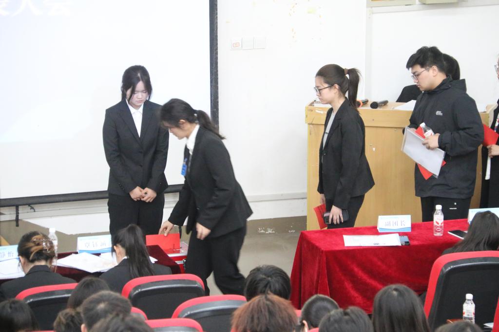 陈霞讲话。她表示,学院学生会在工作中积极参与学院各项规章制度的修订工作,扎实推进学生维权工作,积极遵循“我为同学办实事”的权益指南,工作成绩斐然、成效显著。同时,她希望学生干部提高自我要求,为学院学生工作的持续优化及完善贡献力量,做有理想、有作为的新时代主力军。