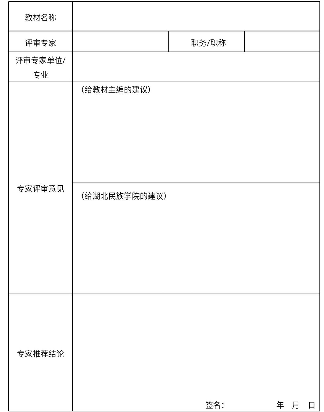 学校每年组织1次自编教材申报立项工作。主编教师填写《湖北民族学院自编教材立项申请书》(附件1),经所在学院主管领导同意后,上报教务处评审。教务处将评审结果在办公网公示一周无异议后,评审通过的予以立项建设。