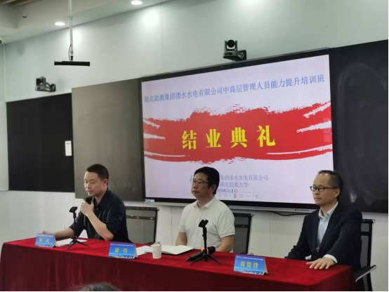 (来源:考试培训科 作者:胡道 审核:刘贤锋)4月25日上午,湖北能源集团溇水水电有限公司中高层管理人员能力提升培训班结业典礼在修远楼5A706 举行。湖北能源集团溇水水电有限公司党委副书记、董事长康烽,继续教育学院副院长刘贤锋出席典礼,学院考试培训科科长杨斌主持典礼。