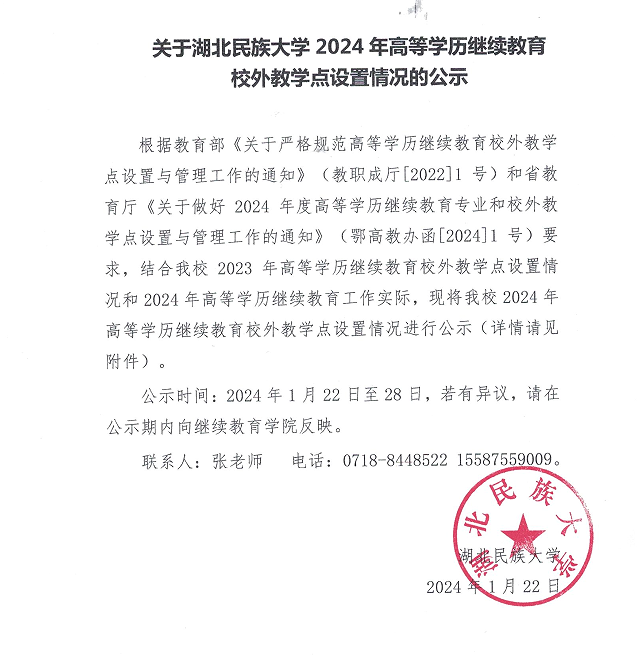 附件:Beat365唯一官方网站2024年高等学历继续教育校外教学点设置情况汇总表