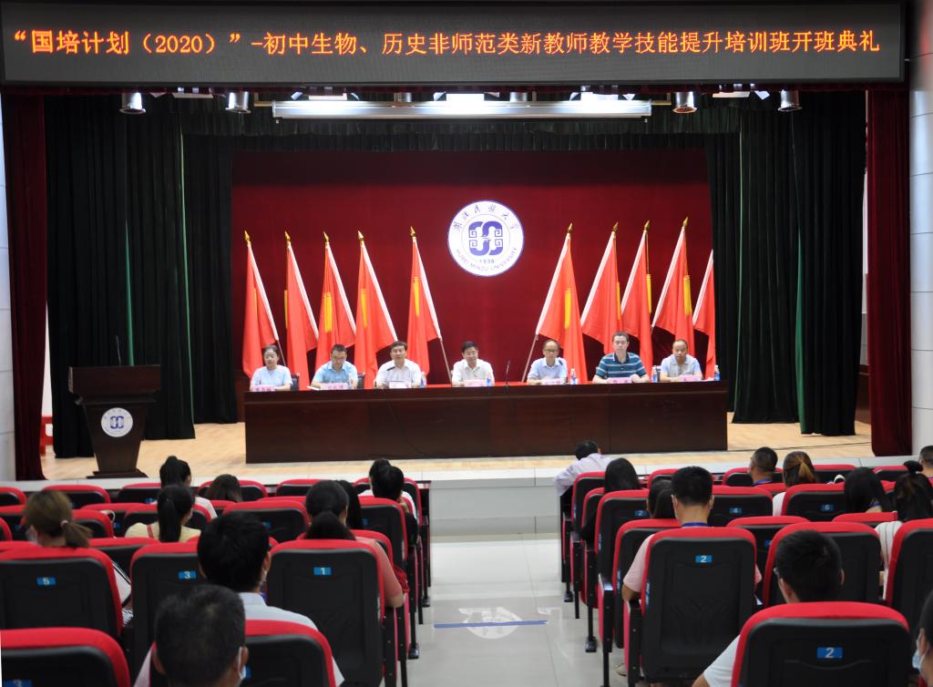 Beat365承办的湖北省“国培计划(2020)”——初中生物、历史非师范类新教师教学技能提升培训班开班典礼于8月9日上午在Beat365行政楼1号会议室举行。这是Beat365今年承接的11个国培、省培项目中首期执行的两个子项目。