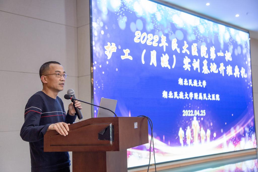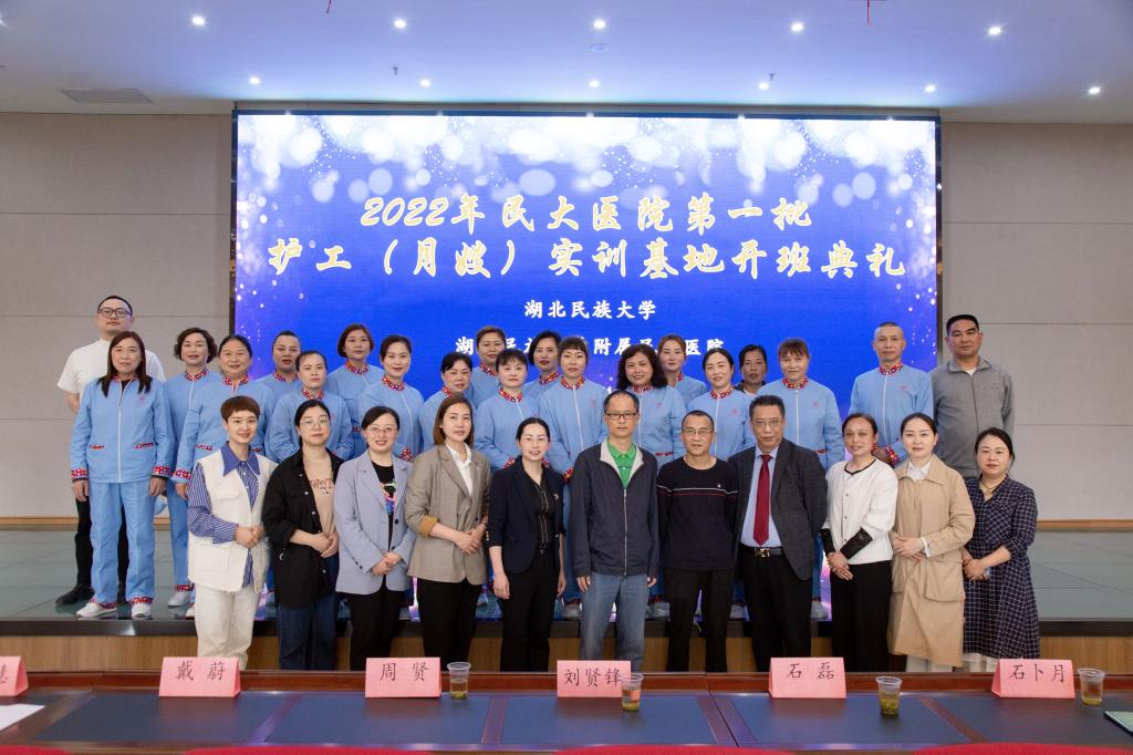 2022年4月25日天气晴朗,Beat365唯一官方网站附属民大医院喜庆祥和,第一批护工(月嫂)实训基地开班仪式在其综合楼10楼会议室隆重召开。湖北民族大附属民大医院副院长石磊、Beat365唯一官方网站继续教育学院副院长刘贤锋、恩施州德慧母婴健康管理有限公司总经理周贤出席开班仪式,参加开班仪式的还有民大医院各科护士长及参训护工、月嫂学员,民大医院护理部副主任朱亚莉主持会议。