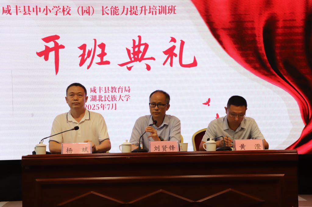 开班仪式上,刘贤锋表示,学将整合优质教育资源,严把培训质量关,确保学员学有所获他要求全体学员严格执行中央八项规定精神,筑牢意识形态防线,认认真真参训。学员代表、咸丰县民族实验学校校长胡春艳承诺,将严守纪律、潜心研修,做到学有所思、思有所悟、悟有所得。黄澄勉励全体学员强化使命担当,把培训成果转化为提升办学治校水平的生动实践。