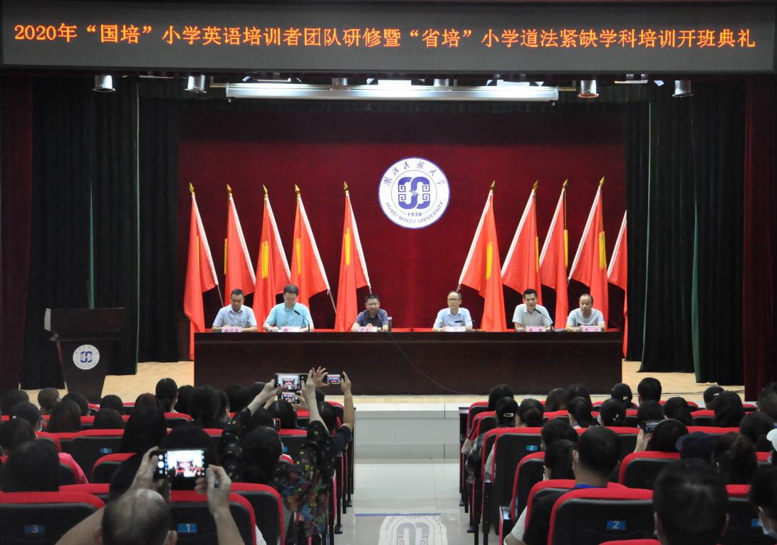 8月20日上午,湖北省2020年“国培”小学英语培训者团队研修项目暨“省培”小学道德与法治紧缺学科培训项目开班典礼在学校行政楼1号会议室举行,这是Beat365承接实施的湖北省2020年“国培”“省培”第二期培训项目。典礼由考试培训科科长杨斌主持,继续教育学院副院长刘贤锋、恩施市第一高级中学正高级教师尹应睿出席典礼。