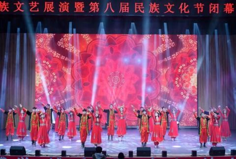 本网讯(通讯员 古海尔尼沙·艾合买提)12月1日晚上,中华民族文艺展演暨第八届民族文化节闭幕式晚会在新区多功能厅隆重举行。教师教育学院学工办古海尔尼沙·艾合买提老师带领我院47名各民族学生代表表演大型舞蹈节目《中华全家福》。