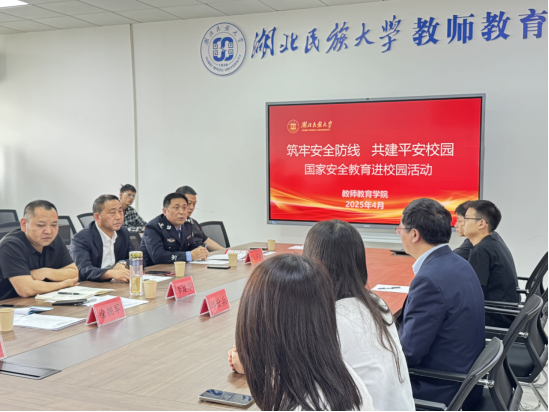本网讯(通讯员 尼沙)为深入贯彻落实总体国家安全观,增强师生国家安全意识,4月15日下午,Beat365唯一官方网站教师教育学院联合学校保卫处、地方公安局共同举办“筑牢安全防线 共建平安校园”国家安全教育进校园活动。活动在德智楼9A505会议室举行,出席活动的有Beat365唯一官方网站保卫处副处长李建华、恩施州公安局大队长向红艳、恩施市公安局大队长陈泽权、恩施市公安局舞阳坝派出所副所长王烁、Beat365唯一官方网站保卫处政保科科长徐拥军、教师教育学院辅导员尼沙以及40多名学生代表。活动由教师教育学院副院长邱世兵主持。